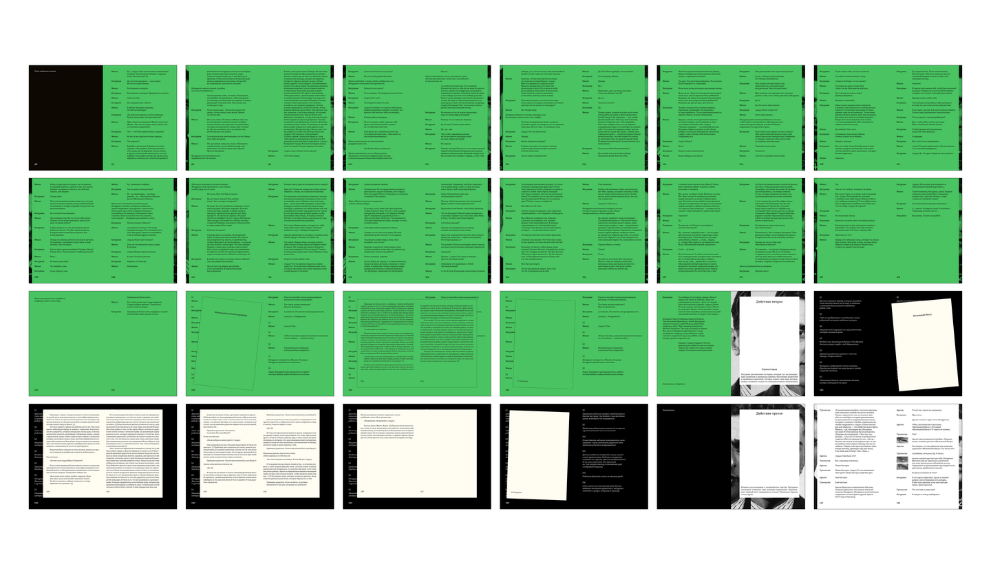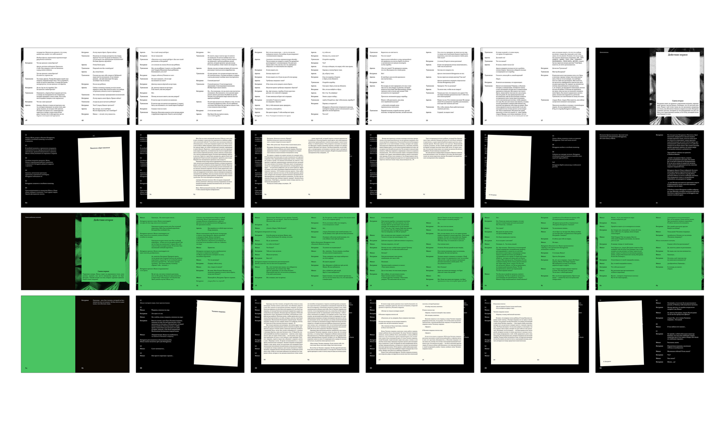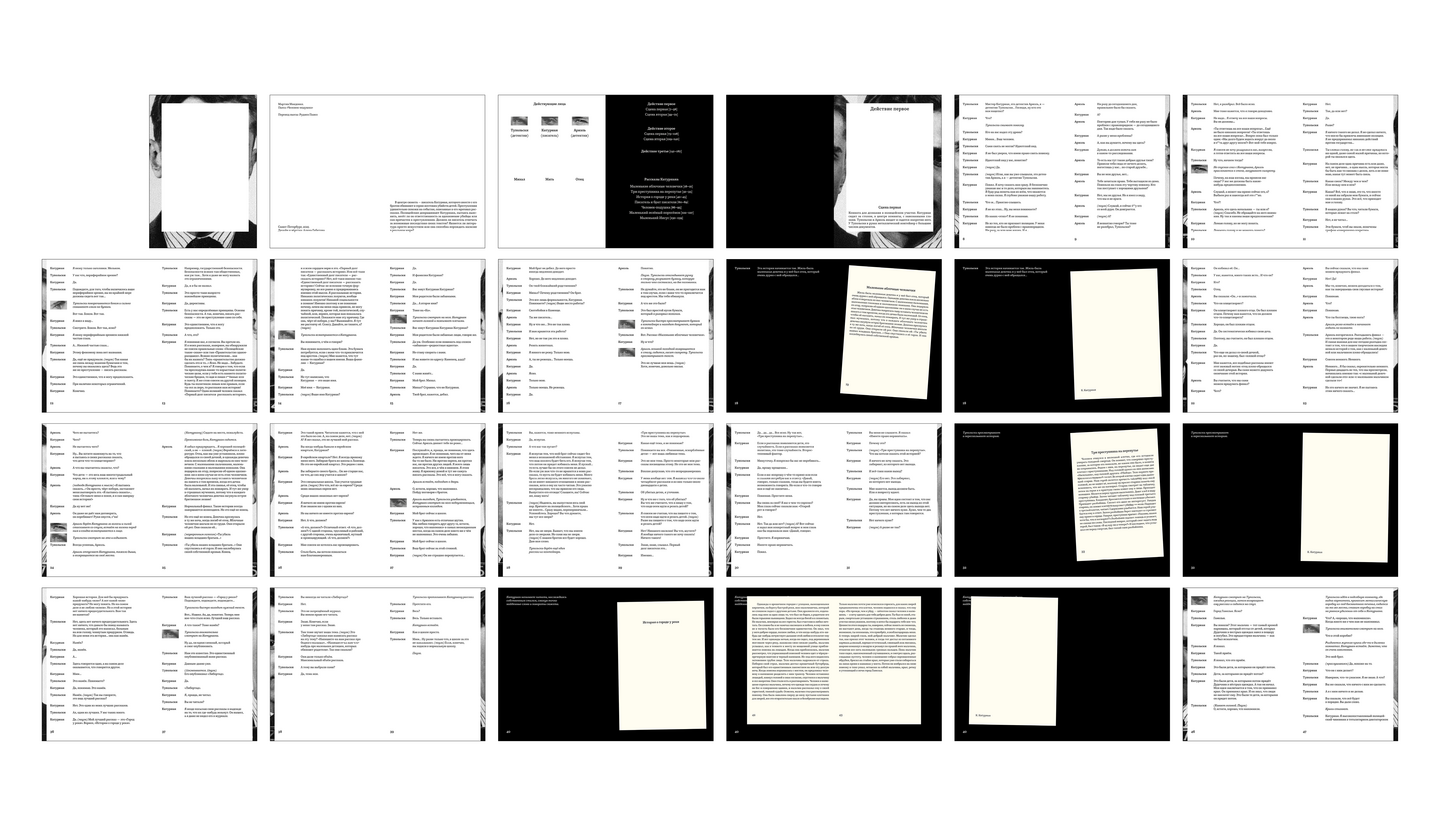 В пьесе представлено 7 рассказов Катуриана. Каждый из них выступает как отдельная небольшая книга, либо карточка, в зависимости от объёма текста.