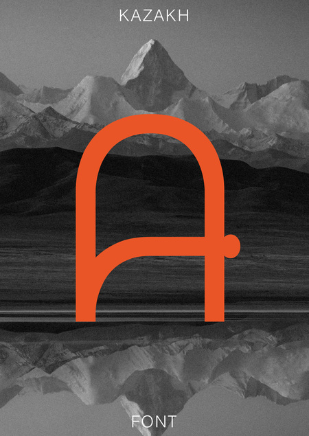 Kazakh — это акцидентный разноширинный шрифт. Начертание раскрывает историческую сторону Казахстана, преобразовывая старое в современную интерпретацию. Он богат маленькими элементами, которые отсылают к наскальным рисункам