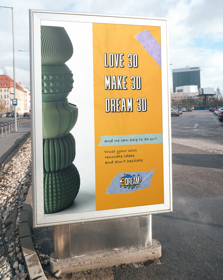 Бренд называется «3Dream». Буква «D» является частью «3D» и одновременно с этим началом слова «dream» — мечтать. Слоган — «Love 3D, Make 3D, Dream 3D» (переводится и расшифровывается как: люблю 3D, работаю в 3D, мечтаю тоже в 3D, то есть физически и объемно, желая воплотить во что бы то ни стало).