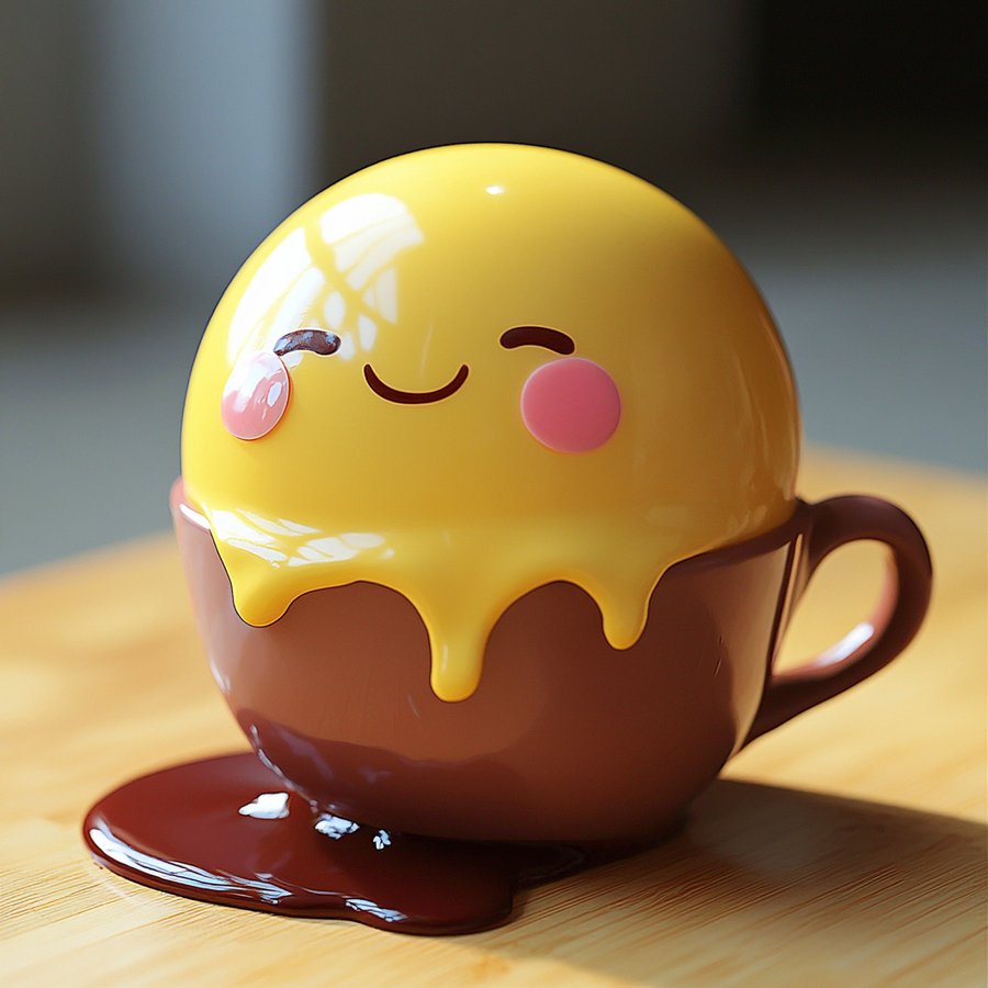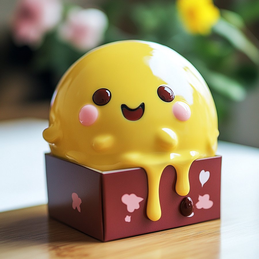 Далее я решила сделать коробку (a box for the cup with the print the yellow little cute slime creature, fantasy —cref (ссылка на ранее сгенерированного слайма)), но у меня вышла еще одна фигурка для декора.