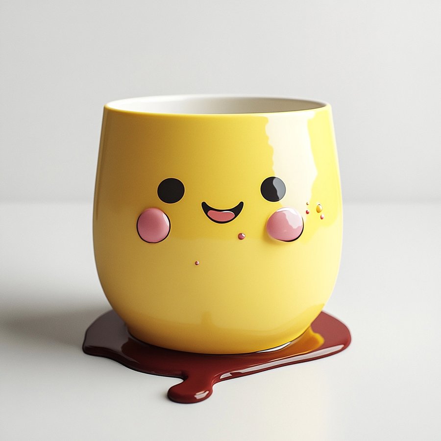 Первым делом я генерирую кружку (a cup with the print the yellow little cute slime creature, fantasy —cref (ссылка на ранее сгенерированного слайма)). Но поскольку я не самый продвинутый человек, сначала я использовала другой промпт и случайно получила прекрасные фигурки для декора (a cup with the yellow little cute slime creature, fantasy —cref (ссылка на ранее сгенерированного слайма)).