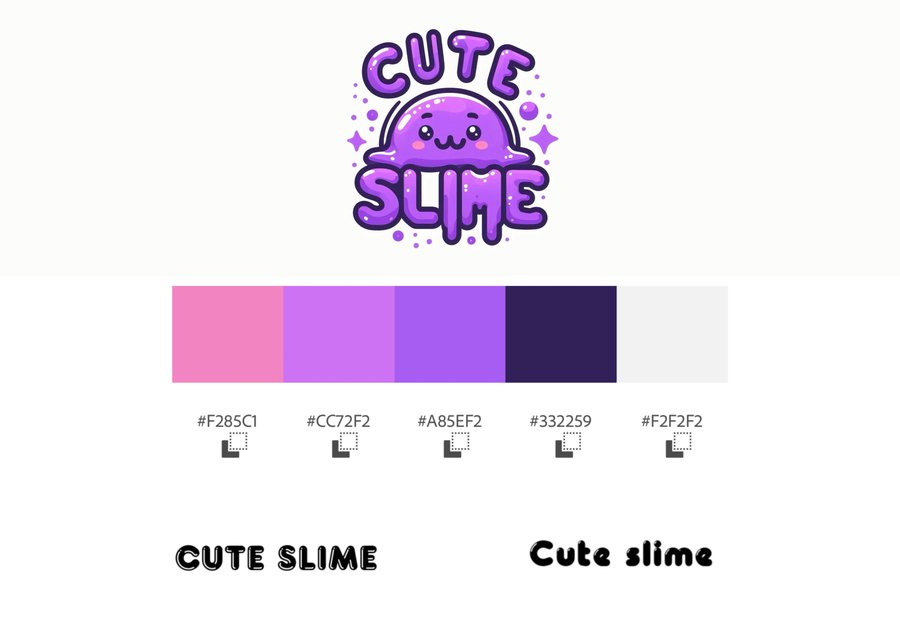 Для начала я начала генерацию слайма (violet little cute slime creature, fantasy), чтобы затем использовать его как референс для логотипа.