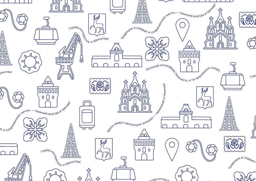 в котором будут отражен культурный код Нижегородской области. Патерн должен хорошо масштабироваться и был универсален для разных типов упаковки и мерча