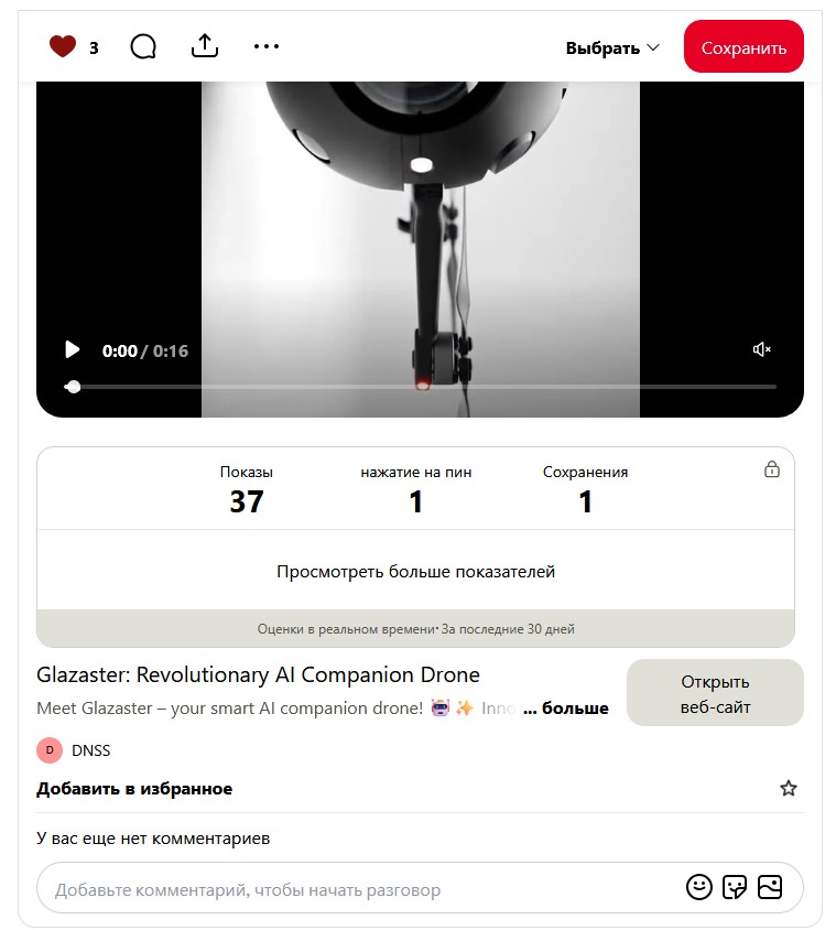 — 37 показов — 1 нажатие на пин, 1 сохранение