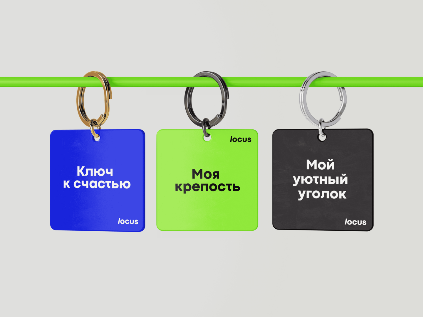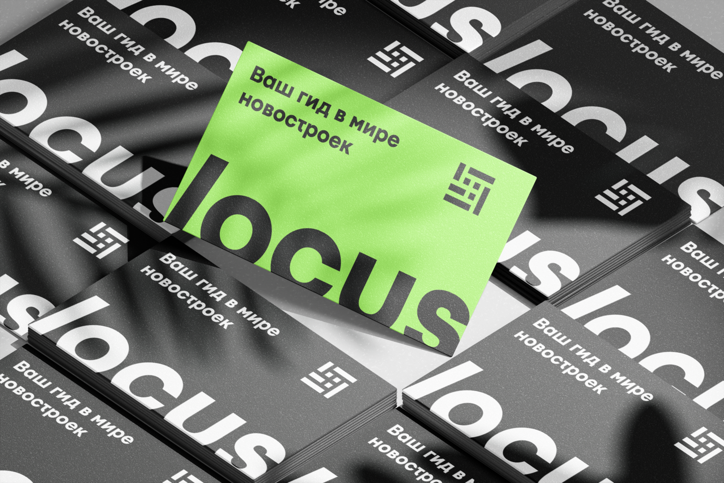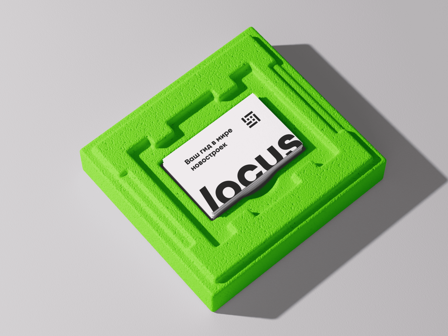 Токен — знак locus. Используем его в сочетании с названием бренда. Элемент выполнен в виде верхнего вида на крыши домов.