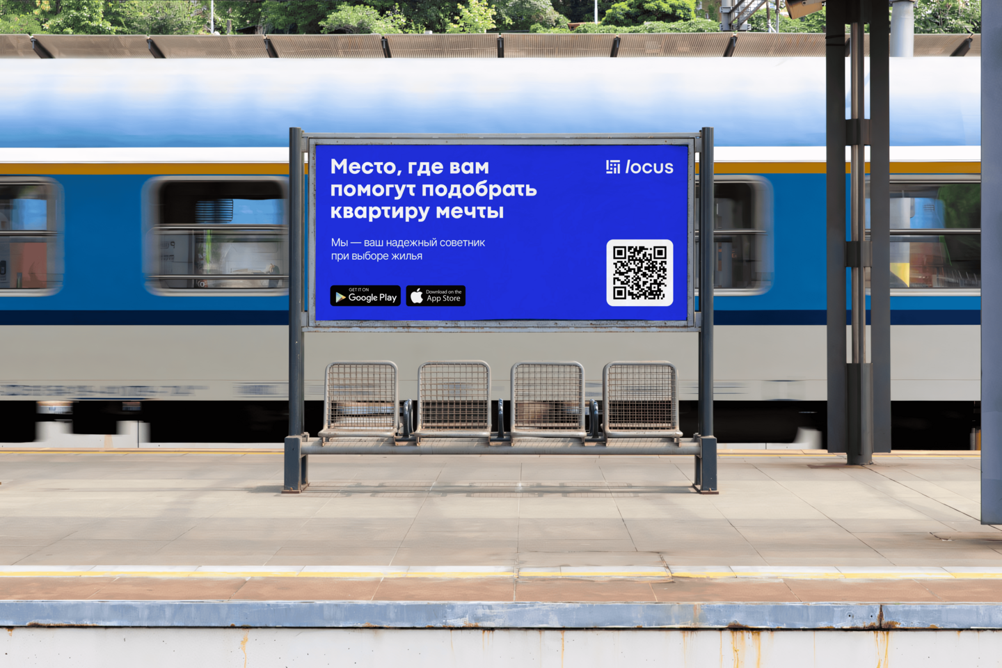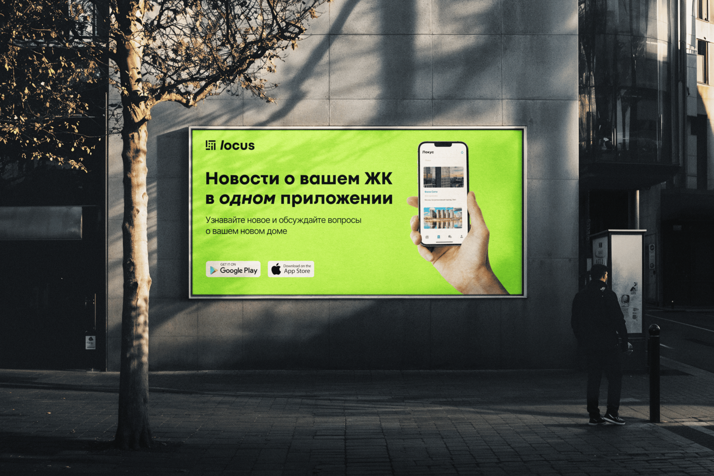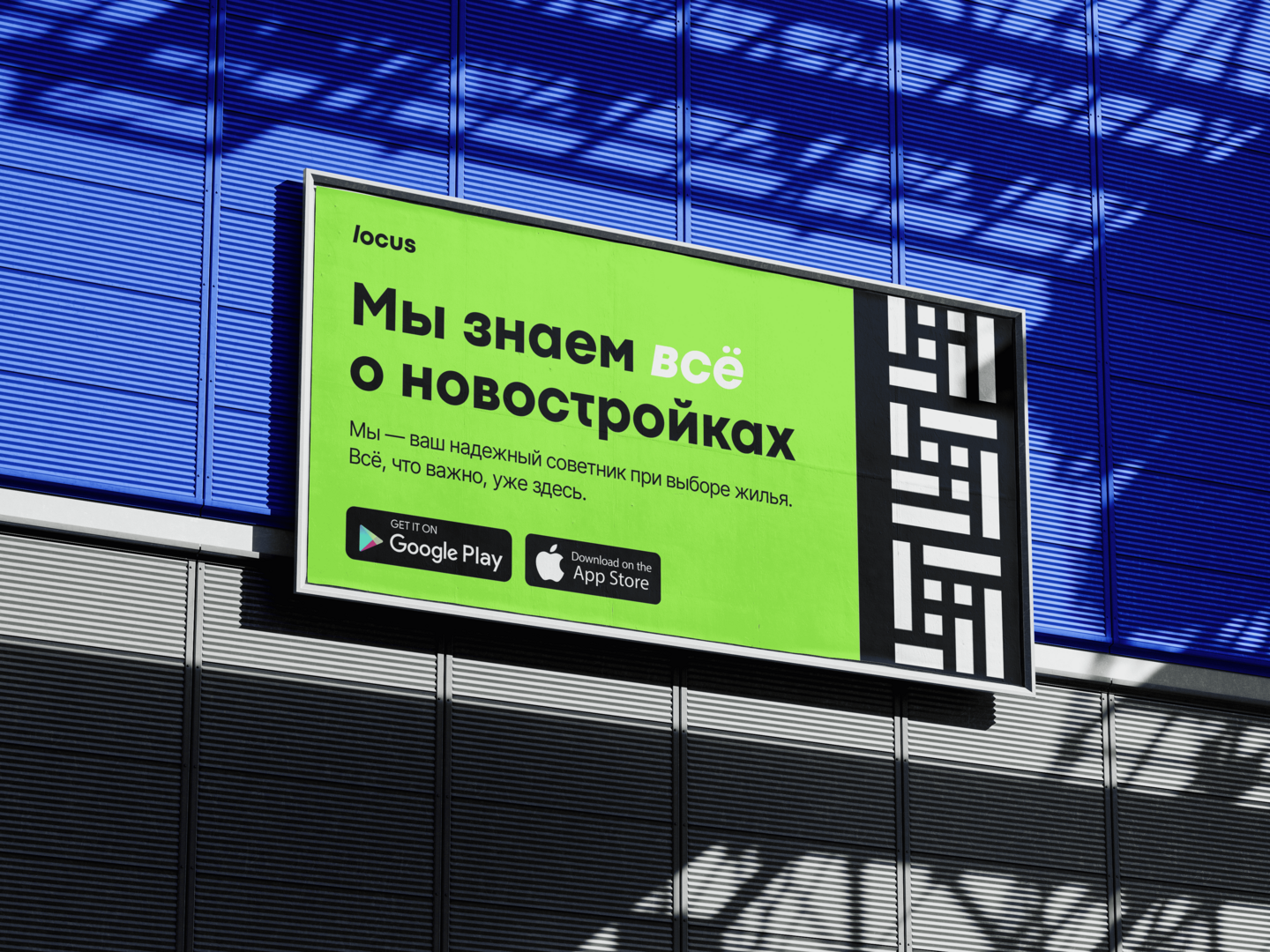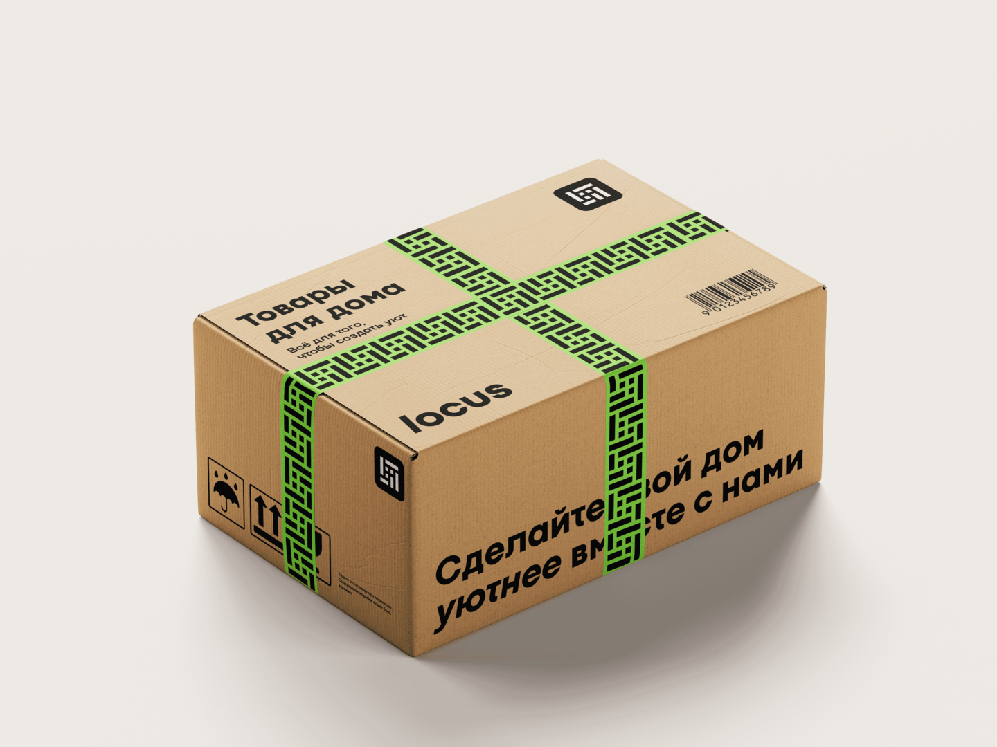 Токен — знак locus. Используем его в сочетании с названием бренда. Элемент выполнен в виде верхнего вида на крыши домов.