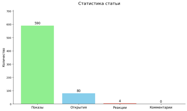 Статье удалось получить охваты, однако только 80 открытий постов на фоне 590 показов (т.е. только 13% увидевших пост открыли его), из которых было получено 4 реакции (5% от открывших статью) — результат не самый лучший. Для того, чтобы понять свои ошибки, я вновь обратилась к DeepSeek с вопросом, что можно было сделать лучше, предварительно попросив его ещё раз проанализировать конкурирующие статьи DTF.