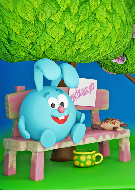 «Смешарики» — мультипликационная франшиза, запущенная в 2003 году. Ключевой темой стали приключения необычных существ, смешариков, в своей сказочной стране — Ромашковой долине. Моей главной задачей было передать настроение мультфильма в витрине и воссоздать предметы, которые фигурируют в нем.