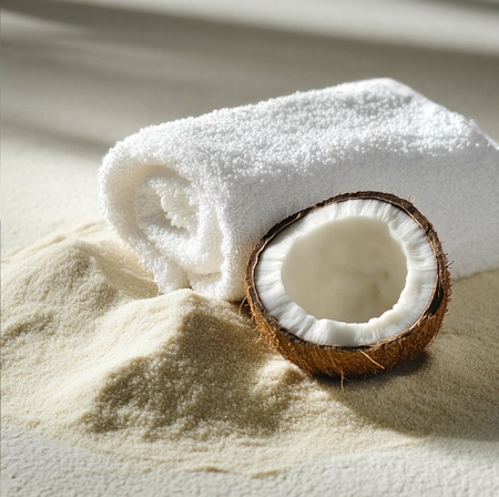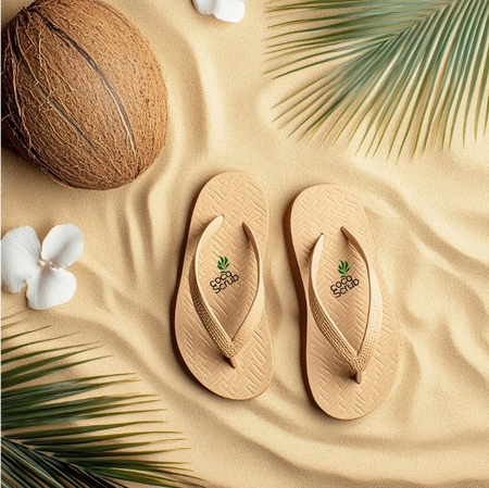 Рукавичка для массажа (скрабирования): многоразовая, из бамбукового и кокосового волокна, песочного или белого цвета с логотипом. Тревел-набор с кокосовым скрабом: мини-версия (50 мл) с тропическим принтом для путешествий. Шлёпанцы из кокосового волокна: пляжные шлёпанцы с минималистичным дизайном и логотипом. Полотенца для рук и ног: набор из двух хлопковых полотенец с вышитым логотипом, пастельные тона. Мыло-скраб для рук и ног: твердое мыло с кокосовой стружкой в форме кокоса, с логотипом. Мешочек для хранения скраба: тканевый, из натурального хлопка, с тропическим узором.