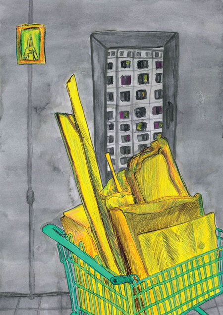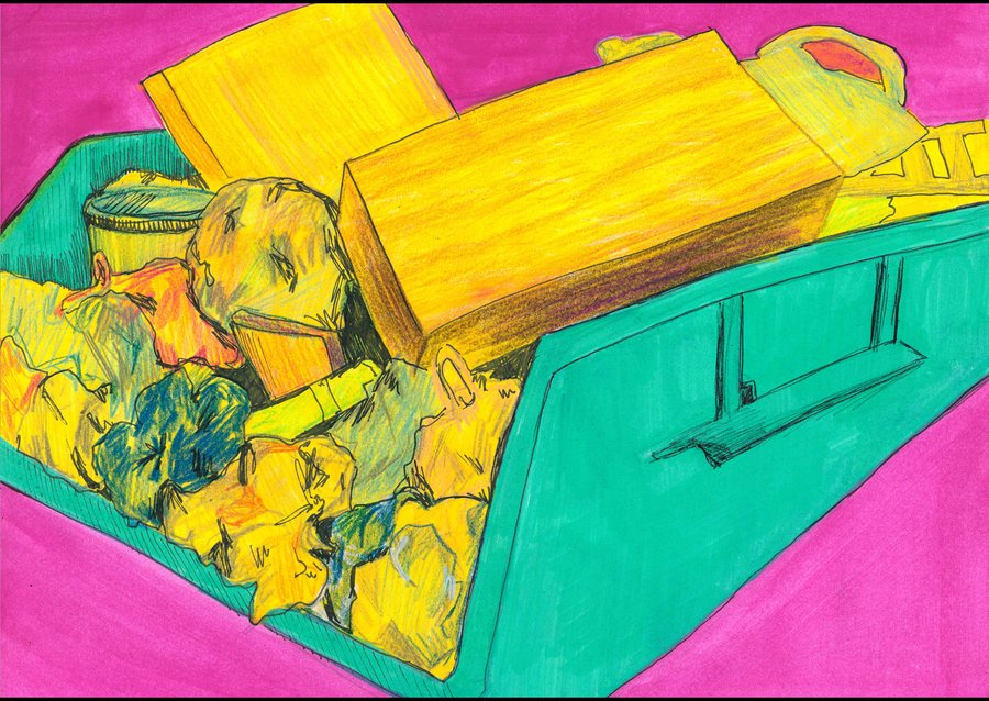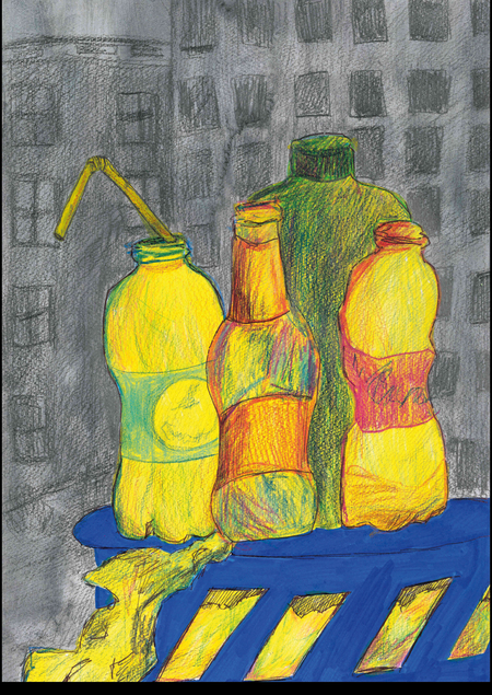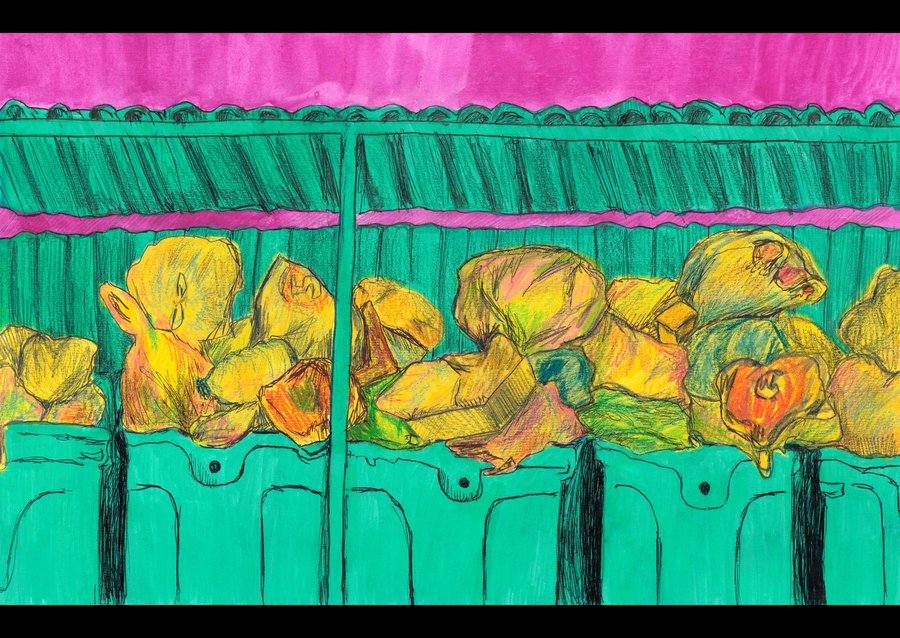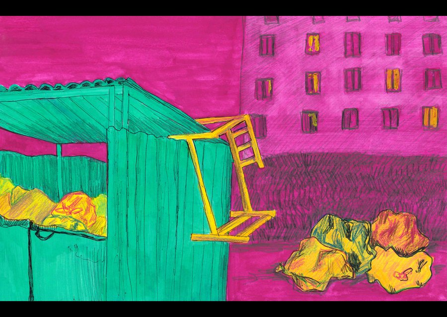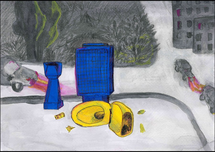 Город состоит из беспорядка. Здания разрушаются, их стены заполнены визуальным шумом, вокруг горы мусора, отчего страдает природа и нарушается всеобщий ритм. В рамках группового проекта мы работали над темой великого беспорядка в городе. Для меня беспорядок — это в первую очередь мусор и грязь, которые окружают нас на городских улицах. В своем проекте я рисую уличный мусор, который кучей складируется на свалках, или же, просто так валяется на улицах города и создает беспорядок.