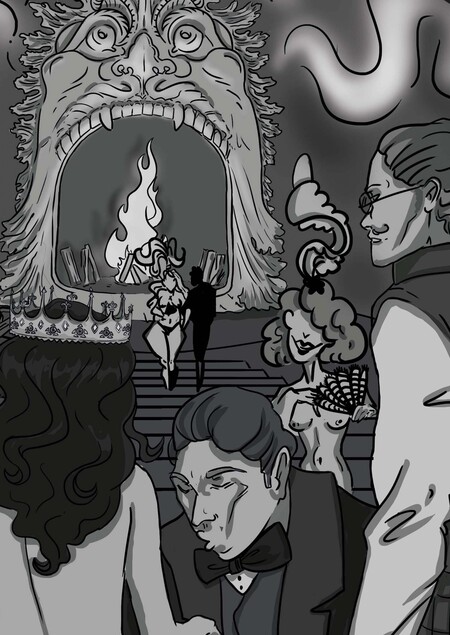 Комикс выполнен по мотивам романа Михаила Булгакова «Мастер и Маргарита», а именно — по сцене знакомства Маргариты со свитой Воланда.
