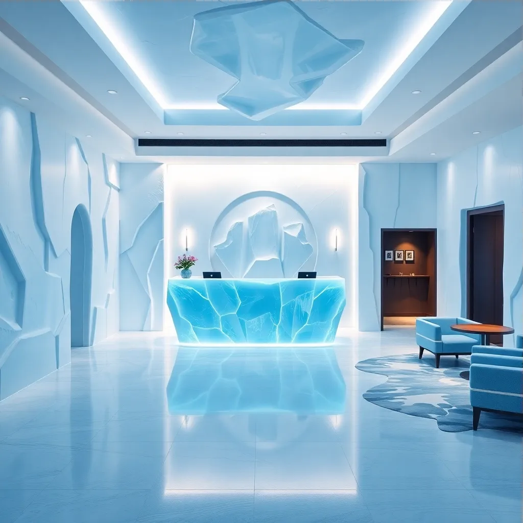 Минимализм, холодные оттенки, атмосферные текстуры. Всё — в эстетике ледяного арт-пространства, созданного с помощью Midjourney и DALL·E.