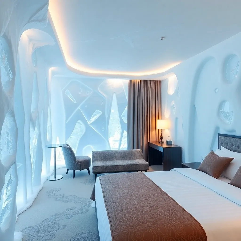 Продемонстрировать, как с помощью ИИ-инструментов можно создать и продвинуть оригинальный медиапроект — от текста и видео до визуалов и постов. Проект посвящён воображаемому ледяному отелю, вдохновлённому эстетикой фильма «Титаник» и архитектурой Скандинавии.