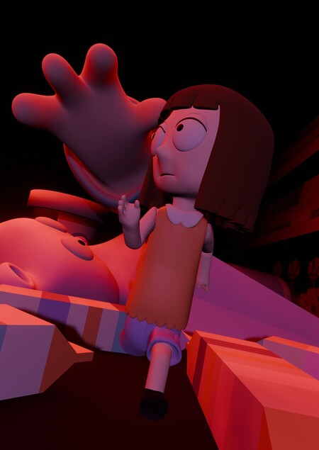 Страх девочки перед кассиршей проявляется в деталях, с момента, как мама оставляет ее у кассы, ей начинают мерещиться жуткие вещи.
