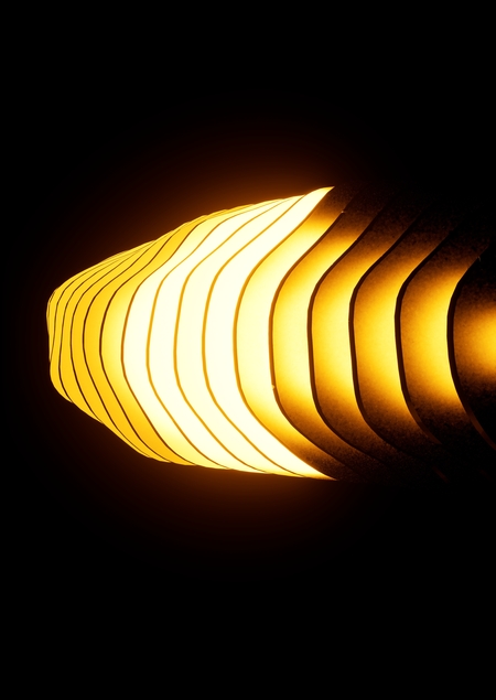 Объект состоит из 24 бесцветных листов нержавеющей стали с полостью для установки лампы.