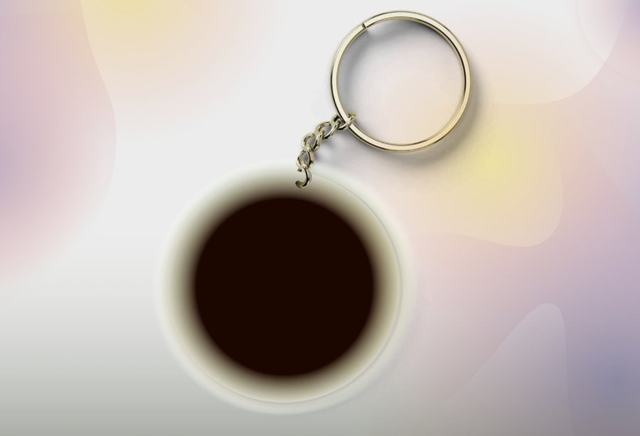 Create a planetary keychain for the Olafur Eliasson Prismatic Planetarium using gradients, and spherical shapes. The colors are subtle: light orange, light green, and dark gradient black holes.