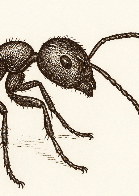 обложка сгенерирована с использованием Chat GPT Prompt: «A detailed drawing of an ant, vintage scientific illustration style, hand-drawn, ink and watercolor textures, reminiscent of 19th-century natural history books, realistic anatomy, delicate lines and shading, neutral background, botanical illustration vibes»