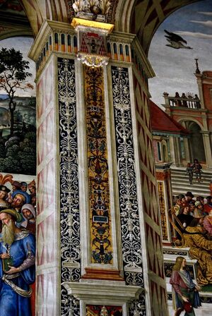 В творчестве Перуджино и Пинтуриккио, старших современников Рафаэля, уже можно наблюдать переходный этап в освоении античного наследия. Для их фресок характерна гармоничная, часто идиллическая композиция, в которую начинают проникать отдельные гротескные элементы — изящные орнаменты, гирлянды и мифологические фигурки, еще подчиненные общему ясному строю. Однако именно их работы подготовили почву для более смелого и системного возрождения гротеска у следующего поколения художников.