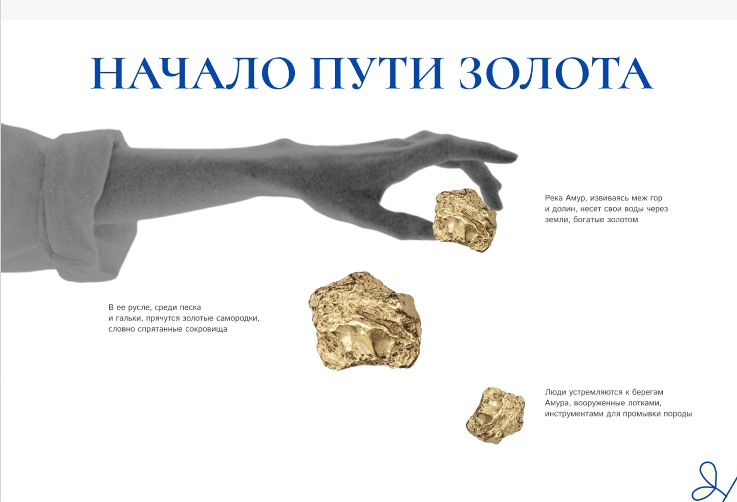 В лонгриде бренд представляет подробную информацию о каждом этапе добычи золота в реке Амур, что помогает ЦА узнать больше о продукте компании