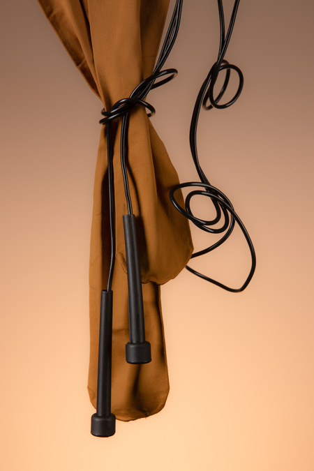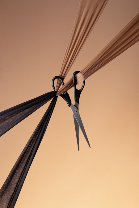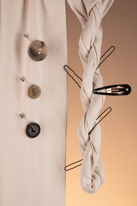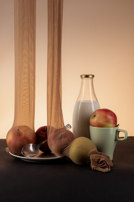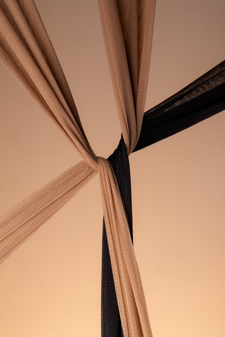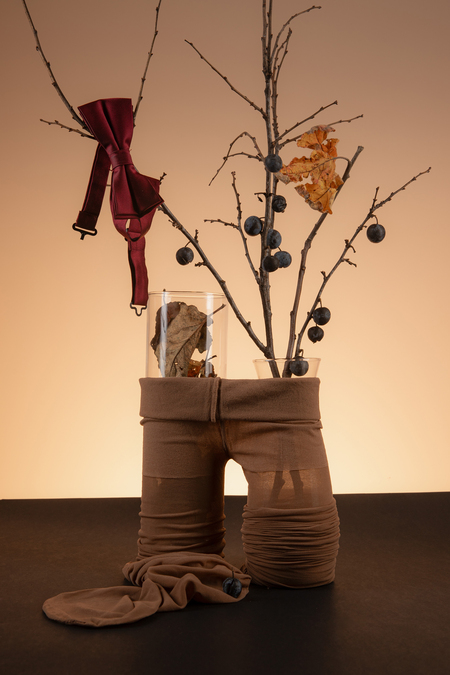 В центре внимания — колготки, предмет одежды, знакомый каждому с детства. Они становятся символом дисциплины и неудобства, строгости