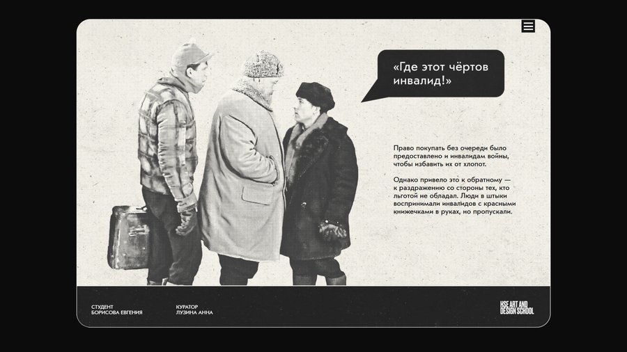 Очередь — неотъемлемая часть советского общества: человек проводил в ней от 2 до 8 часов ежедневно. Стояли за всем, что только можно купить. Сейчас дефицита нет, но система ценностей, десятилетиями основанная на соперничестве и ограниченности, не могла не повлиять на жизнь современного человека.