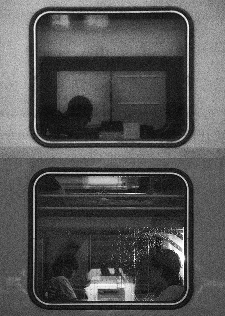 Концепция сложилась довольно спонтанно, а именно в момент, когда я провожала друзей на вокзале и мне в целом очень понравилась атмосфера прощаний и отправления в далекий (или не слишком) путь. В серии я сфокусировалась на окнах как на зеркале, отражающем внутренний мир пассажиров и внешний мир, сливающихся в единое целое.