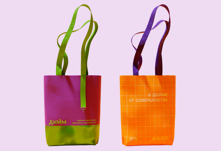 На смену тканевым шопперам пришли сумки из светоотражающего материала, поддерживающего своими переливами света концепцию цветового решения бренда.