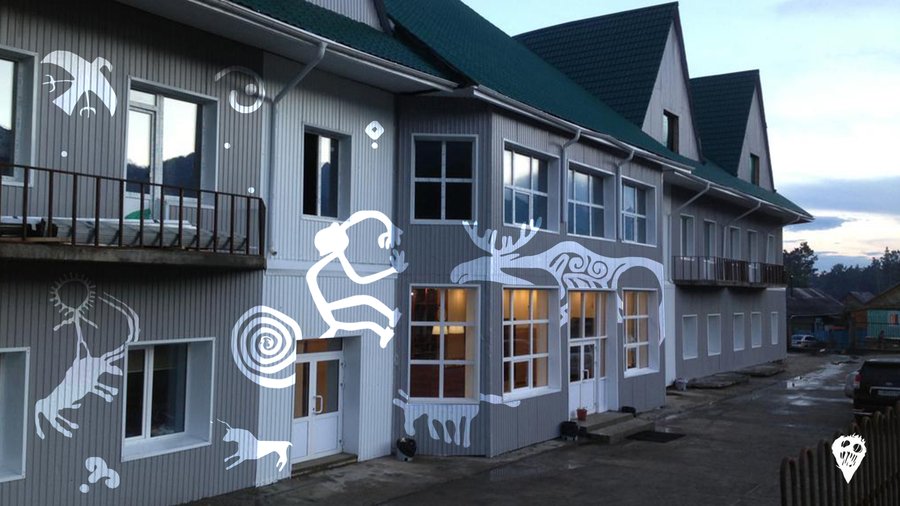Флуорисцентный Мурал за здании гостиницы Иркут, проявляющийся только с наступлением сумерек. При наличии подписки на паблик, в гостинице вместе с завткаком подается Специальный напиток с мудростью Шамана с добавлением активированного угля