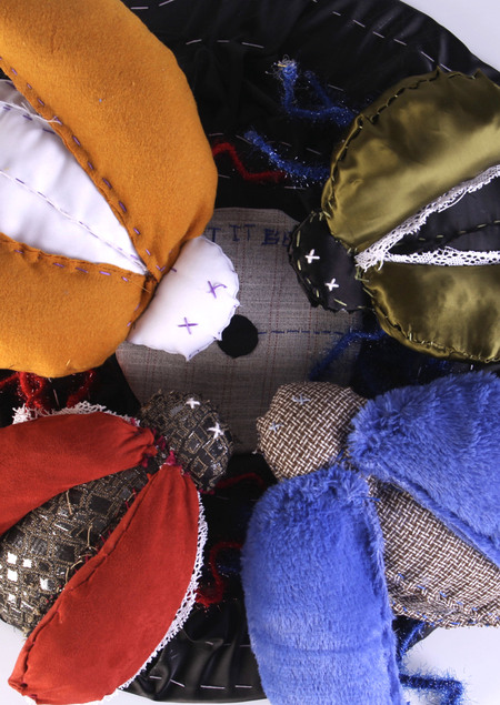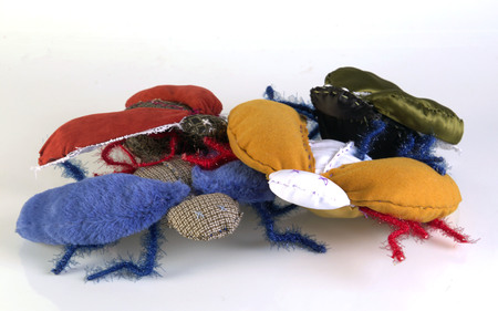 Проект состоит из текстильных скульптур — четырех жуков и виниловой пластинки. Все изделия сшиты вручную.