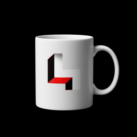 9. Кружка: Photorealistic image of a white ceramic mug on a pure black background. Faithfully apply the provided logo onto the mug. The logo must be replicated precisely without any alterations, additions, or stylization. Important: preserve the original logo design completely.