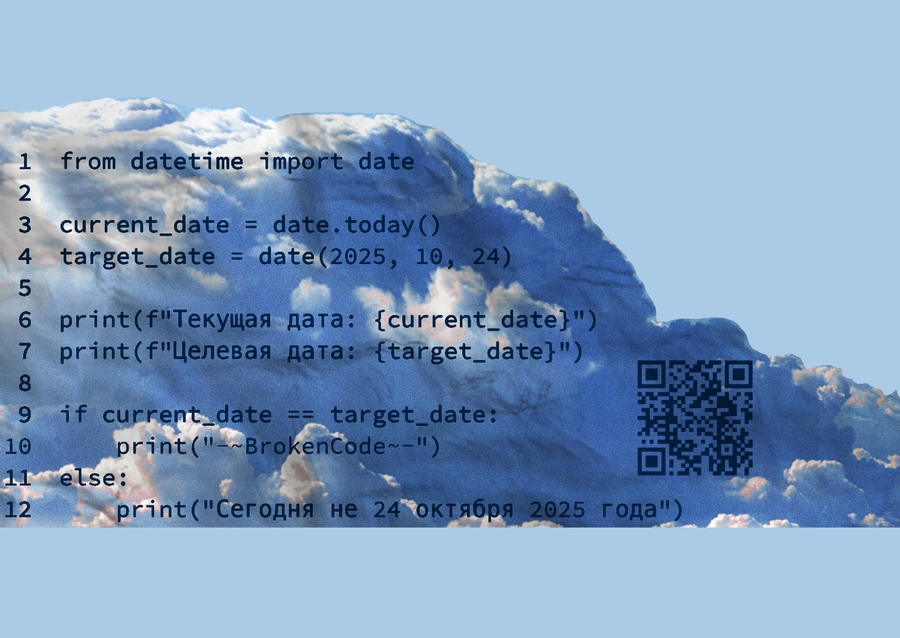 if current_date == target_date: print («-~BrokenCode~-») else: print («Сегодня не 24 октября 2025 года»)