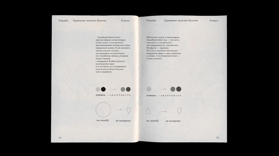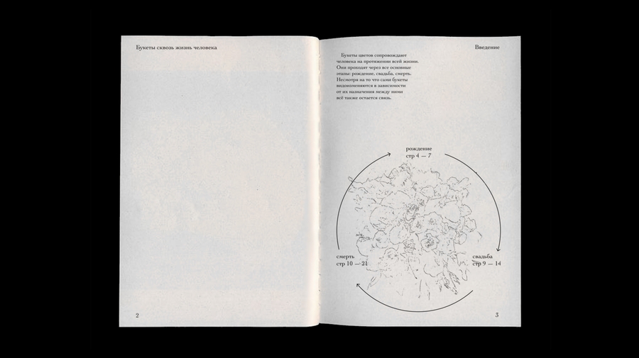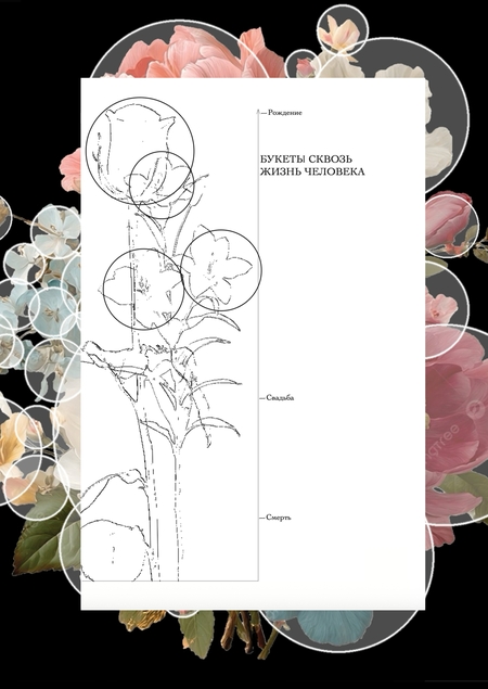 Букеты остаются неизменным в жизни человека сопровождают его на всех этапах: рождение — свадьба — смерть. Зин рассматривает то, как изменяются между собой букеты, оставаясь взаимосвязанными между собой