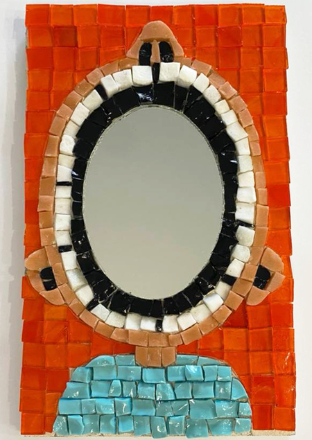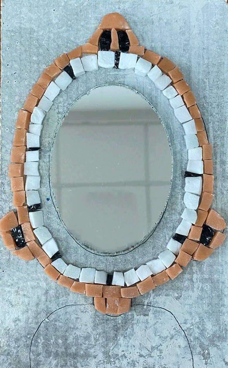 В рамках модуля на вариативе «Творческая мастерская по мозаике и витражу» я выполнила две работы: мозаика из стекла «Шмель» размером 20 × 20 см и мозаика «Вопль» в смешанной технике из стекла и смальты размером 14 × 23 см.