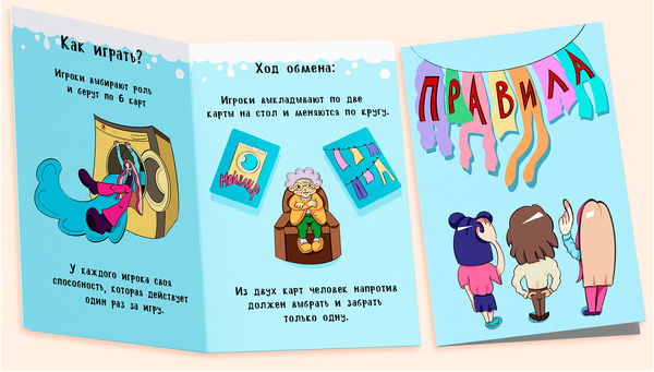 Ход обмена: игроки выкладывают по две карты на стол и меняются по кругу. Из двух карт человек напротив должен выбрать и забрать только одну.