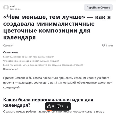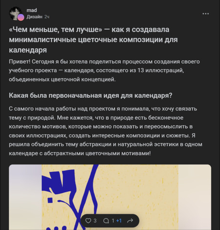 В качестве продвижения своего личного проекта, а именно иллюстраций для календаря я решила разместить статью-интервью, в которой рассказываю о процессе создания иллюстраций.