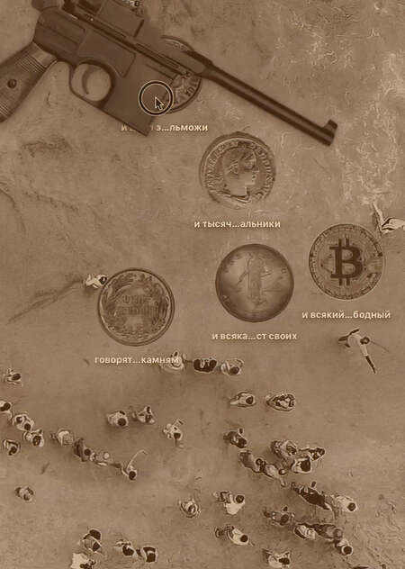 Вода. В ней видны шприцы, монеты, картинки, бинт, автомат, листок календаря. Рука Сталкера в воде.