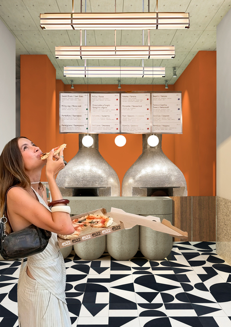 Дизайн-проект пиццерии на территории креативного кластера в центре города.
