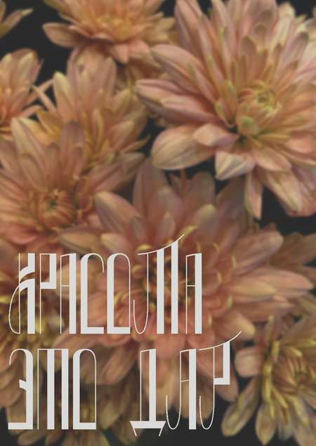 Акцидентный шрифт для цветочной студии «Дар». Симбиоз народной письменности и тенденций шрифтового дизайна сегодня. Контраст линий и явные изгибы штрихов в попытке осовременить фольклорные мотивы, посмотреть на русское творчество через призму 2022. Шрифт вдохновлен письмом вязью и народными цветочными орнаментами, поэтому в основе единый толстый штрих, словно использовался ширококонечный инструмент, и тонкие линии, завершающие букву.