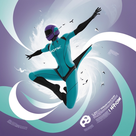 Leonardo AI: Create a poster design for the company POTOK, which specializes in indoor skydiving experiences. The poster should evoke feelings of freedom, motion, and energy, focusing on the concept of airflow and dynamic movement. Incorporate the word POTOK in bold, modern, sans-serif typography, seamlessly interacting with smooth, flowing lines or abstract shapes that represent air currents. The background should be clean and minimalistic, featuring a gradient of sky blue (#5BC0EB) and pure white (#FFFFFF) to symbolize air, clarity, and lightness. Add subtle highlights or accents in soft lavender (#A299E2) and mint green (#A2E4B8) for a fresh, vibrant look.