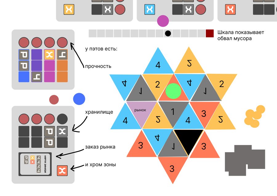 Если вы все-таки потеряли все жетоны, то пэт переворачивается, все ресурсы сбрасываются и вы выбираете один. Игрок тратит робота чтобы создать нового пэта.