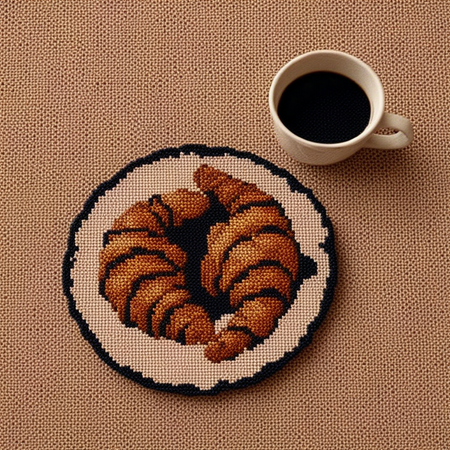 А эта серия фокусируется на простых, узнаваемых и «тактильных» блюдах. Я не беру сложные ресторанные блюда, а концентрируюсь на выпечке, десертах и завтраках, которые идеально ложатся на текстуру «крестика».