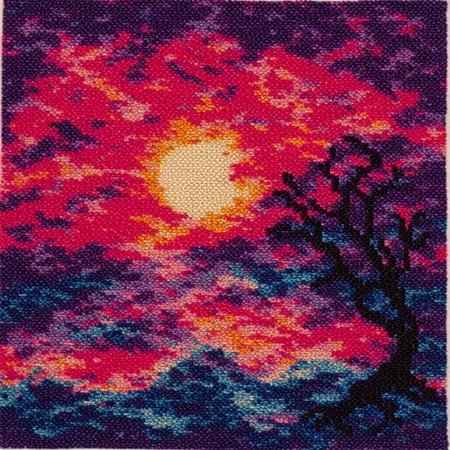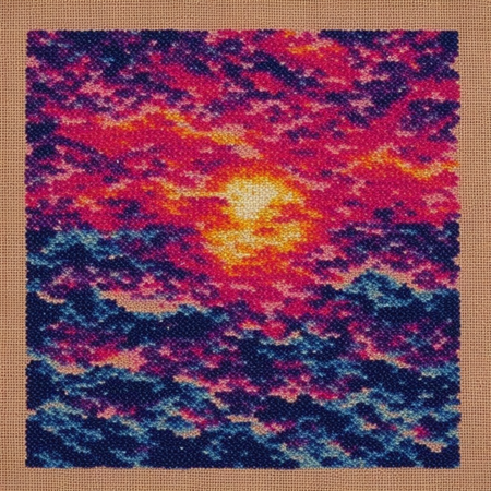 Идея была в том, чтобы заставить нейросеть «понять», что такое «вышивать крестиком». Не просто пикселизировать картинку, а именно научить её имитировать текстуру: отдельные «X"-образные стежки и даже «дырочки» канвы под ними.