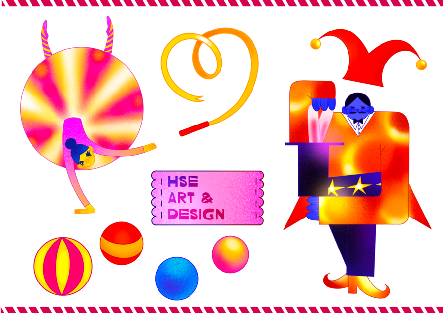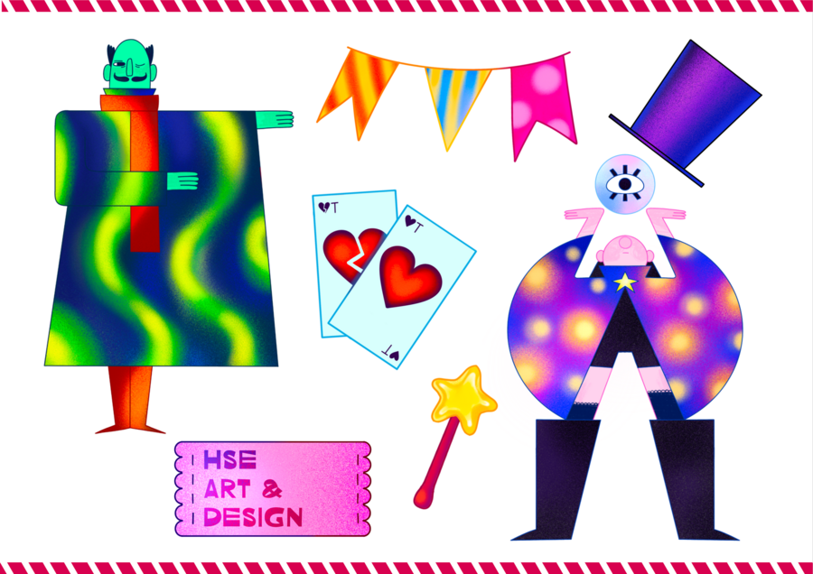 Серия работ представляет собой изображения тех, кто дарит нам чувство волшебства. В ней я представила фокусников, гимнастку и гадалку, классических представителей цирка.