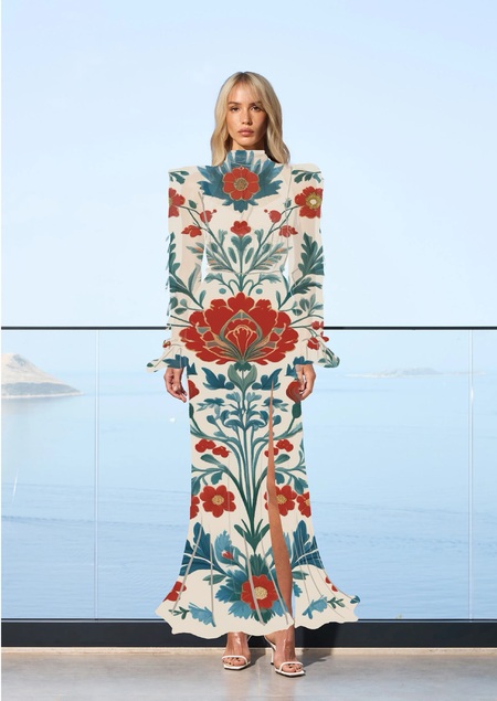 Мой проект — это коллекция платьев, вдохновленная историей русского дизайна в ее разных вариациях. Я провожу исследование четырех ключевых эпох — русского стиля, авангарда, ар-деко и оттепели. На основе вышеперечисленных эпох я создала принты, передающие визуальный язык каждого периода.