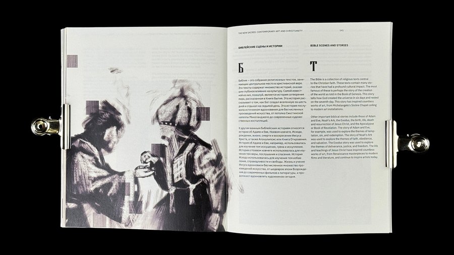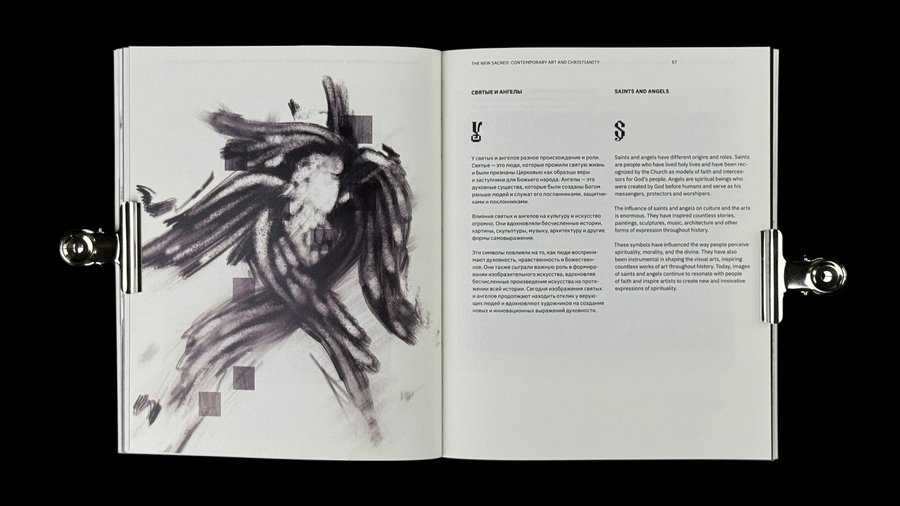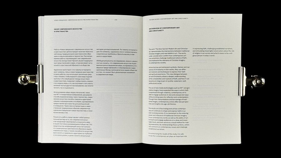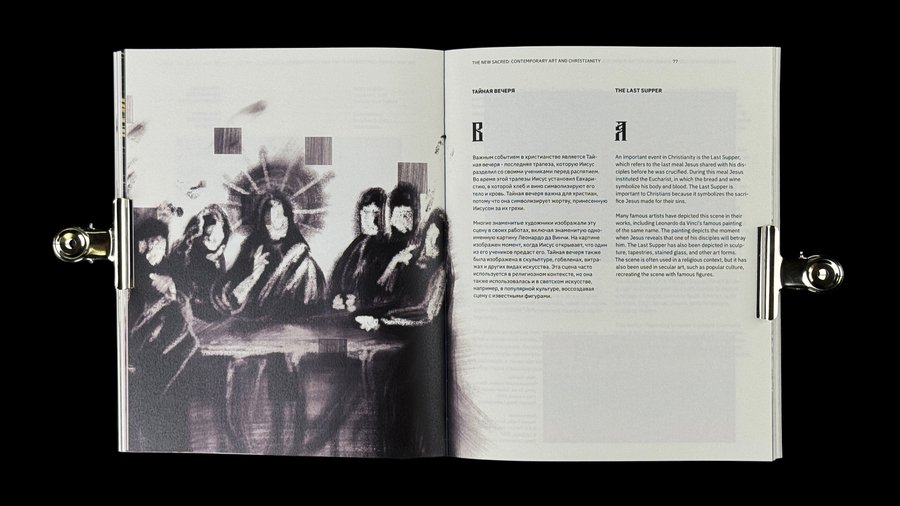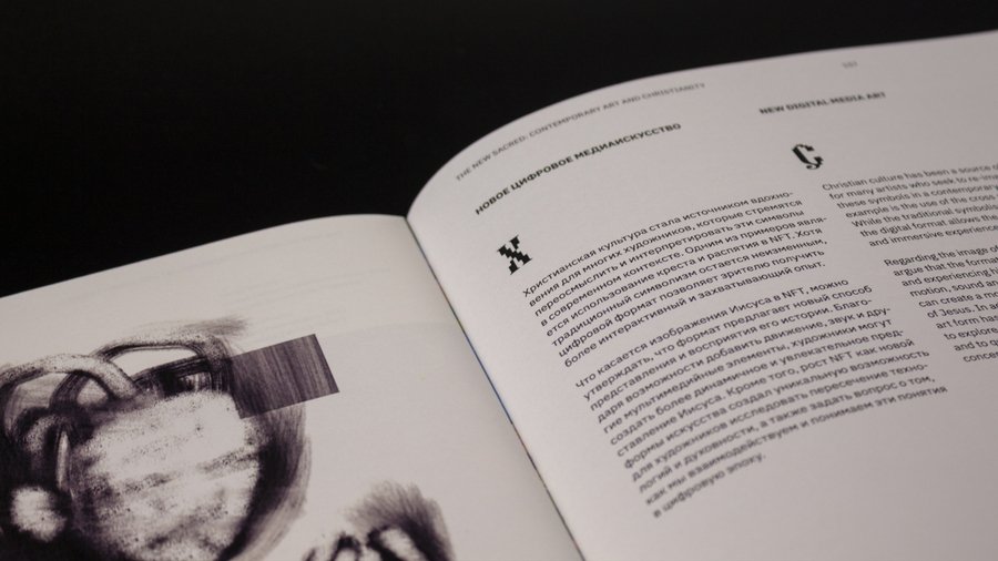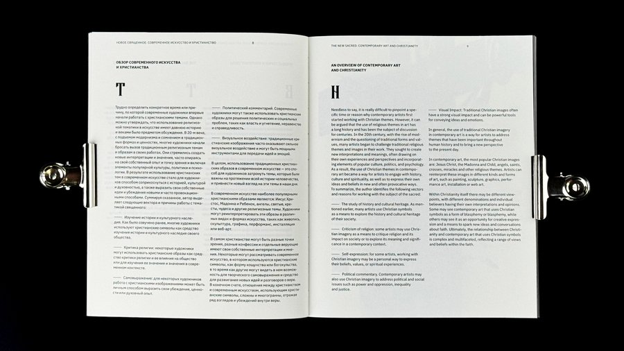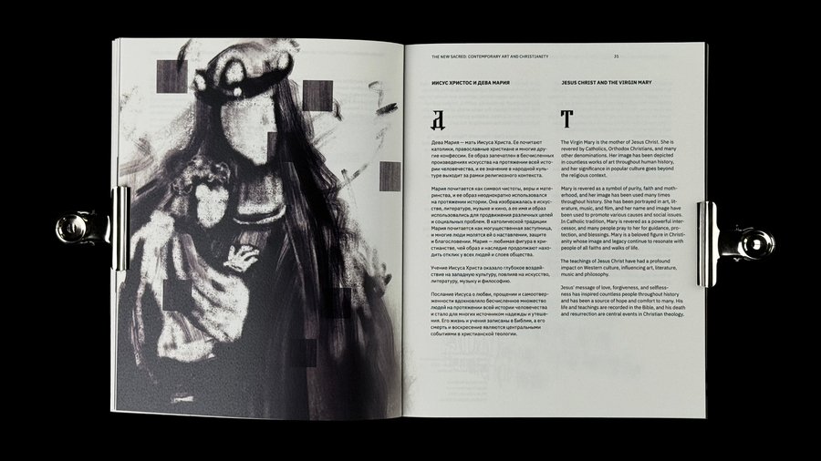 Дизайн издания подчеркивает концепцию диалога между традицией и современностью. Использование ацендентного шрифта Slavica Mix для заголовков символизирует связь с сакральным наследием, в то время как минималистичный IBM Plex Sans в основном наборе акцентирует внимание на актуальности темы.