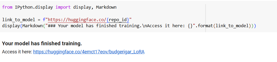 После того как обучение было завершено, модель можно было сохранить на Hugging Face.