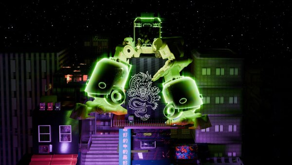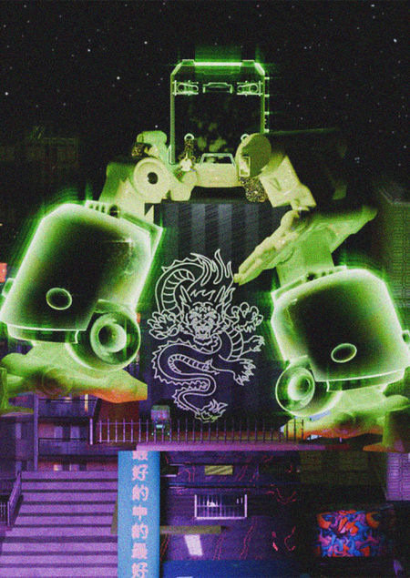 Не просто тату салон, а новое технологическое пространство в будущее. Яркие неоновые вывески, переливающаяся навигация, железные роботы