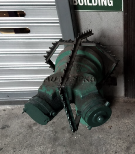 Лавочки с разделителями в Манчестере и Гидрант с шипованным каркасом в Нью-Йорке