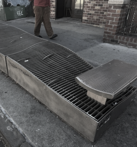 Материал, жёсткость и геометрия сиденья позволяют дозировать, как долго человеку комфортно оставаться на месте. Узкие металлические лавочки без спинки, наклонные опоры вместо полноценного сиденья, холодные поверхности формально «дают возможность присесть», но физически стимулируют поскорее освободить место.