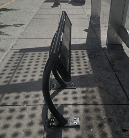 Наклонная лавочка на улице Нью-Йорка Наклонная лавочка на одной из автобусных остановок Канзас-сити